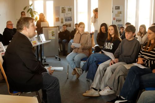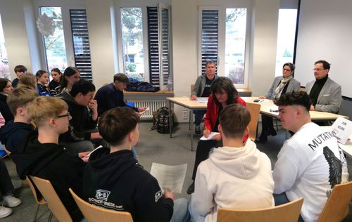 Jede Klasse hatte sich zuvor mit dem Wahlprogramm einer Partei intensiv beschäftigt und zahlreiche Fragen formuliert. Die Schülerinnen, die sich mit Themenfeldern von Migration bis Umweltschutz vorbereitet haben, fragen auch bei der AfD kritisch nach, ohne dass sich Nolte aus der Reservelocken lässt. Keine Spur von Extremismus, keine Vorlage, um negativaufzufallen. Jan Nolte ist „darauf bedacht, bei den Kernthemen der Partei zubleiben, dabei aber nicht zu sehr ins Detail gehen zu müssen“ meint Organisator Heinz Helge Fach.