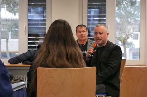 Das Format des „heißen Stuhls“ ist straff getaktet: Zwei Minuten pro Antwort, dann gibt ein Zeitwächter das Zeichen zum Weitergehen. Am Montag sind dies Fabian Becker und Emmanuel Bushiri, am Dienstag Emily Geissler und Eileen Dietrich, alle aus der Klasse 7a. Damit keine Ausweichmanöver oder Behauptungen ohne Grundlage stehen bleiben, checken die stellvertretende Schulleiterin Birte Behr und Stufenleiter Bodo Löwenstein die Fakten im Hintergrund. Sie greifen – wenn auch nur selten nötig – ein, wenn Aussagen nicht mit der Realität übereinstimmen.