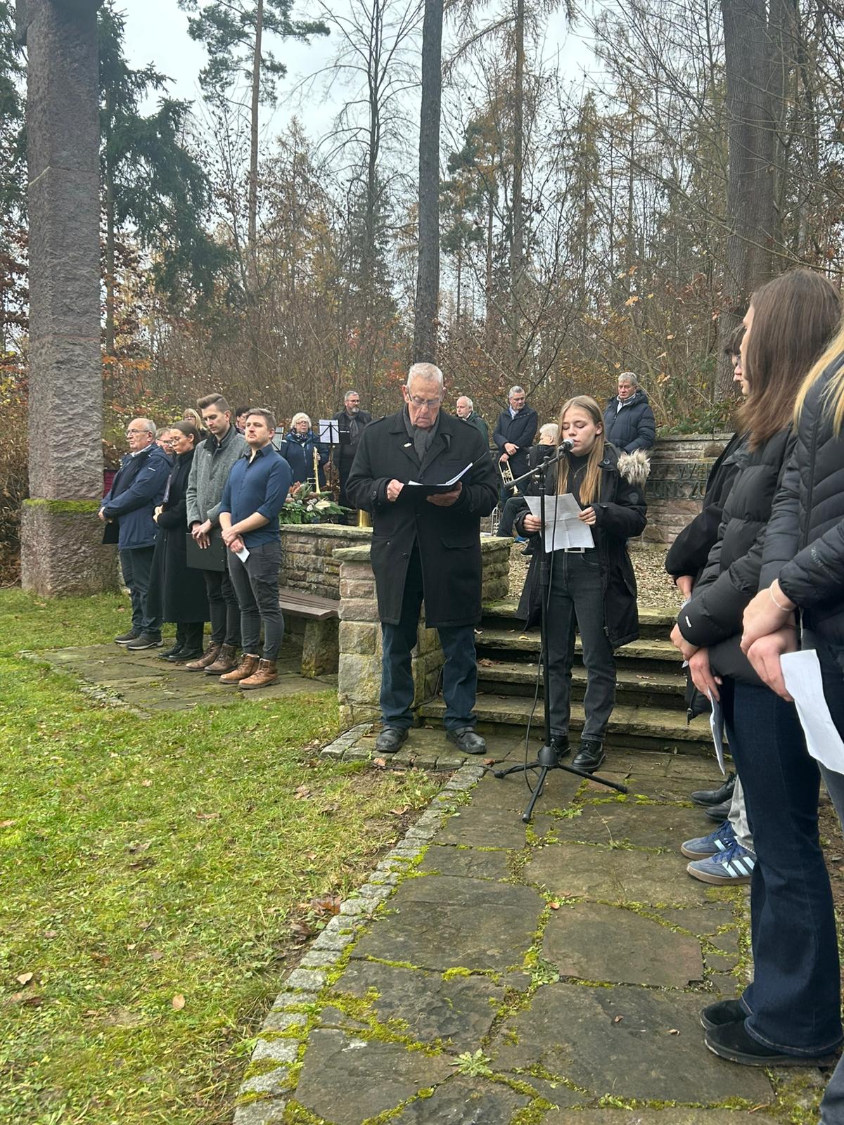 Um der Opfer aller Kriege zu gedenken und zugleich zum Frieden und demokratischen Handeln aufzurufen, trugen die Schüler ihre vorbereiteten Texte und Gebete vor. Gerahmt wurde die Veranstaltung von Redendes Bürgermeisters Daniel Rudenko, der Pfarrerin Tabea Schmidt sowie Herrn Damm selbst.