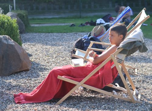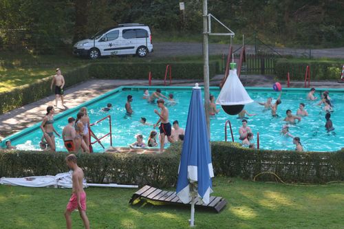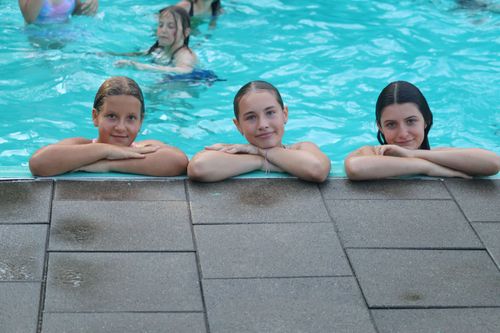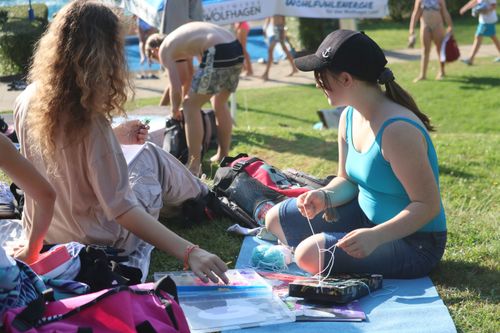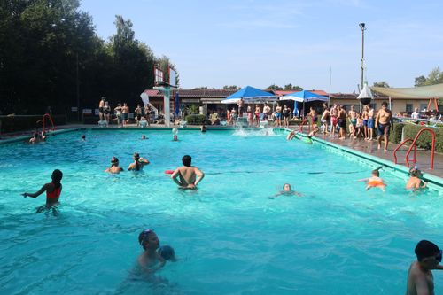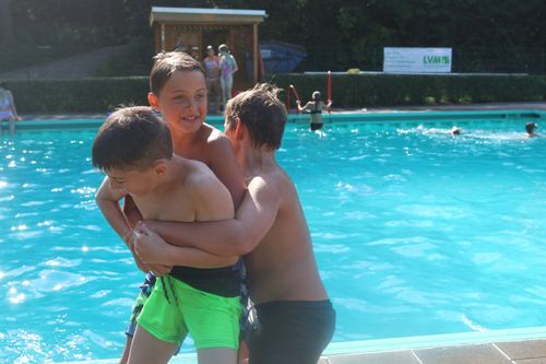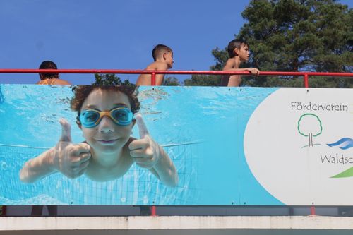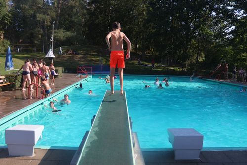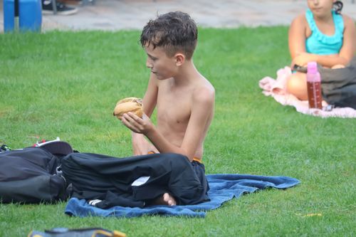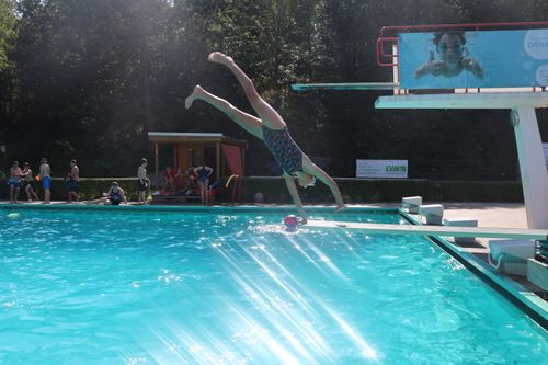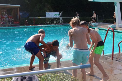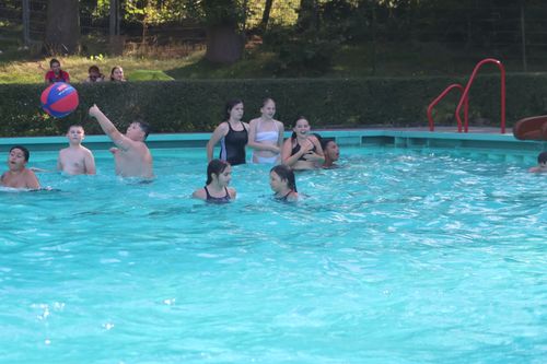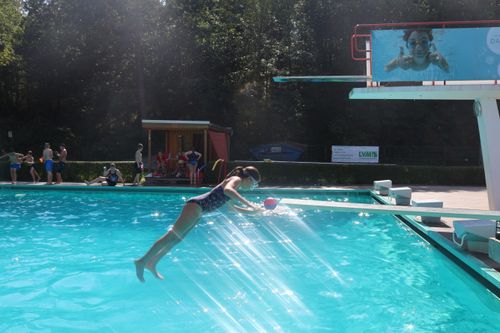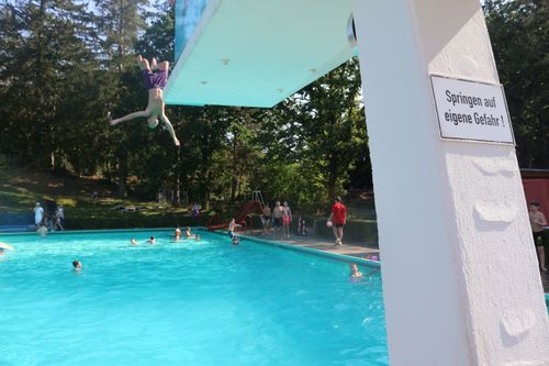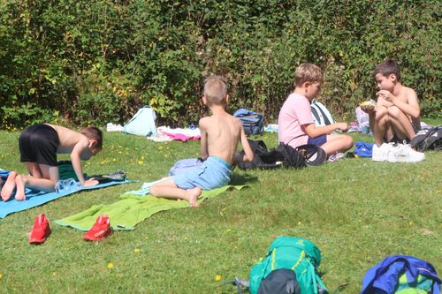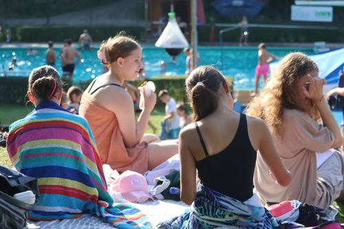 Nach der einstündigen Wanderung war das kühle Nass für unsere Schülerinnen und Schüler genau richtig. Es wurde geschwommen, getaucht, gesonnt und natürlich auch gegessen. Auch der Kiosk hatte für uns geöffnet und die Schülerinnen und Schüler ließen sich die Leckereien auf den ausladenden Wiesen des Schwimmbads schmecken - denn was schmeckt im Schwimmbad besser, als eine Schale mit Pommes.