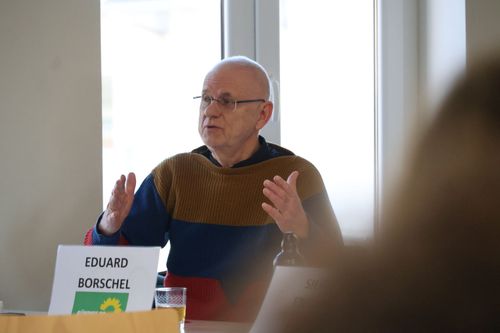 Edmund Borschel: Entspannt und auf Augenhöhe: Für den Grünen ist das Aufeinandertreffen so verfänglich wie ein Plausch. Der pensionierte Lehrer fühlt sich sichtlich wohl, fragt die Schüler nach seinen Antworten: „Zufrieden?“ Stellenstreichungen hält er für fatal, Barrierefreiheit für ein Muss. Platz zwei bei der Schülerschaft.