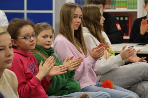 Spannung und Aufregung lagen in der Luft, als Frau Braun den Jahrgang 6 im Leseraum zum diesjährigen Vorlesewettbewerb begrüßte. Acht Schülerinnen und Schüler, die sich zuvor als Klassensiegerinnen und Klassensieger durchgesetzt hatten, traten gegeneinander an und zeigten ihr Können im Vorlesen, während ihre Mitschüler in den Zuschauerreihen die Daumen drückten.