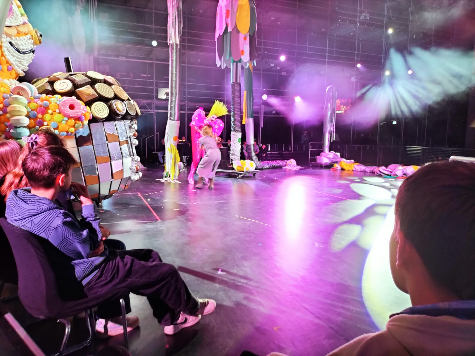 Eine märchenhafte Aufführung erlebte die 6G1 mit ihrer Klassenlehrerin Frau Lange beim Besuch der Oper „Hänsel und Gretel“ im Staatstheater Kassel. Da das eigentliche Opernhaus derzeit umgebaut wird, fand die Aufführung in der Interimsspielstätte statt – ein besonderer Ort, der das Erlebnis für die Klasse zu etwas ganz besonderem machte, denn die Sitzplätze befanden sich direkt auf der Bühne, die Lernenden waren somit mittendrin.