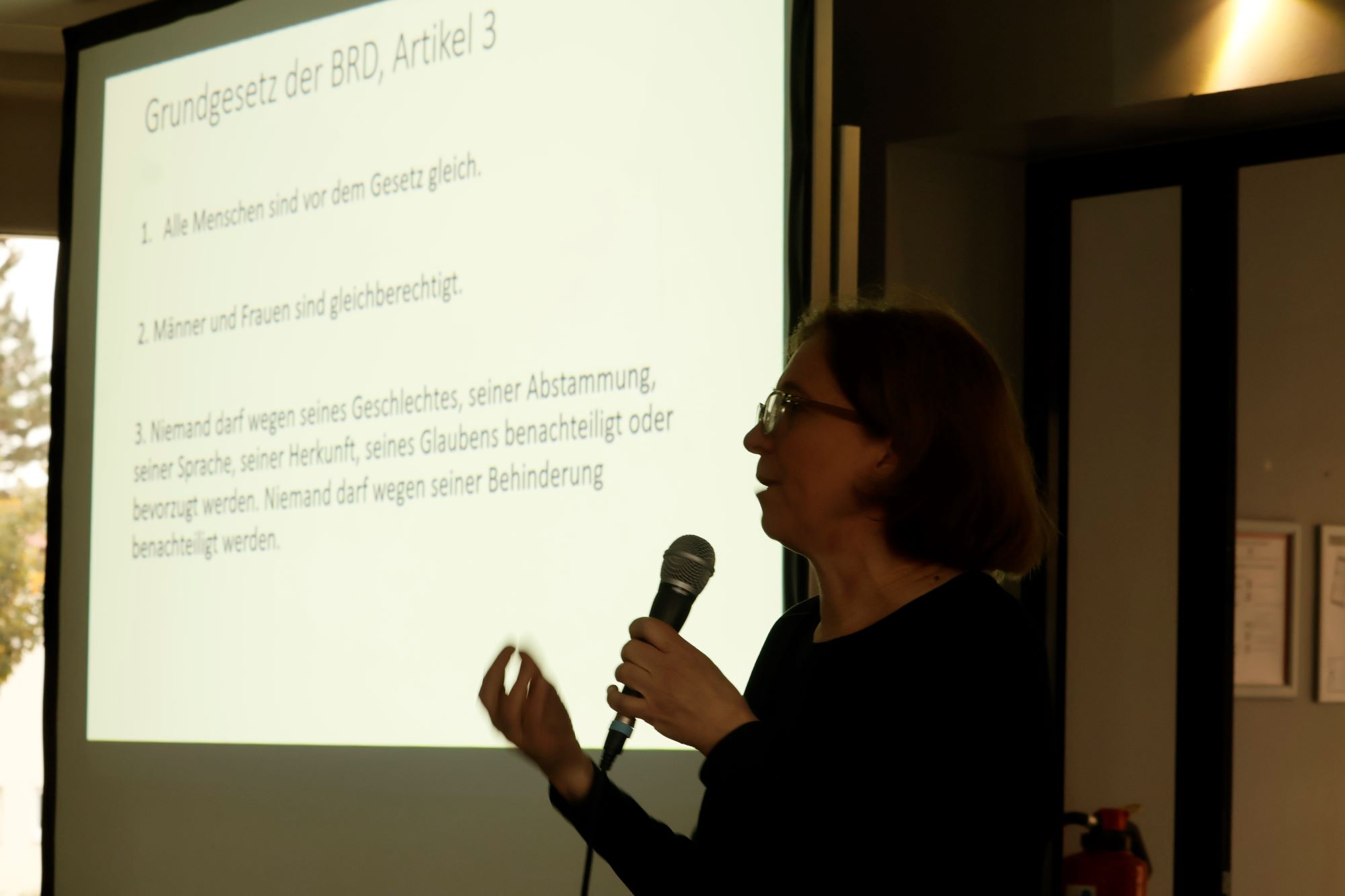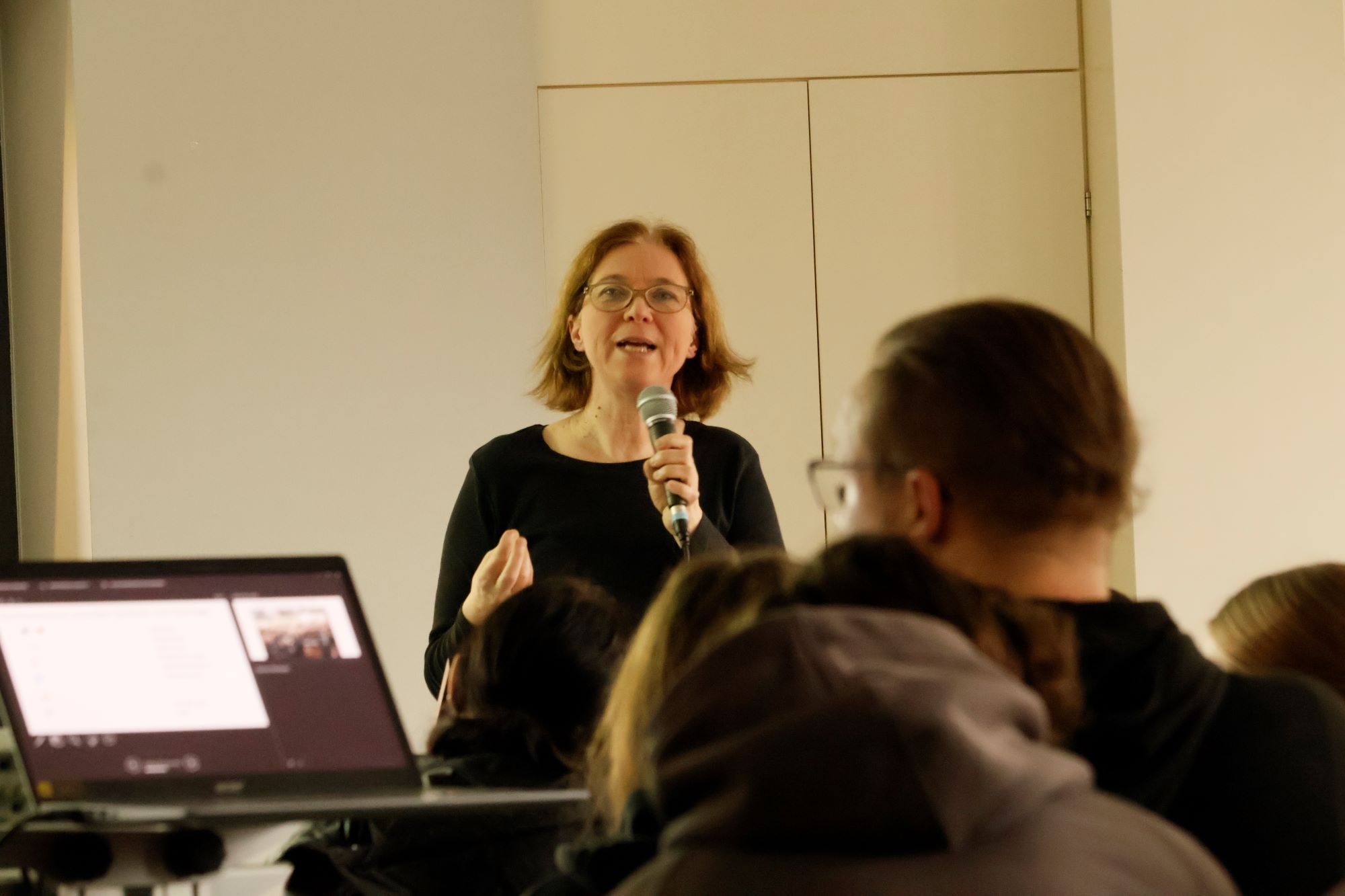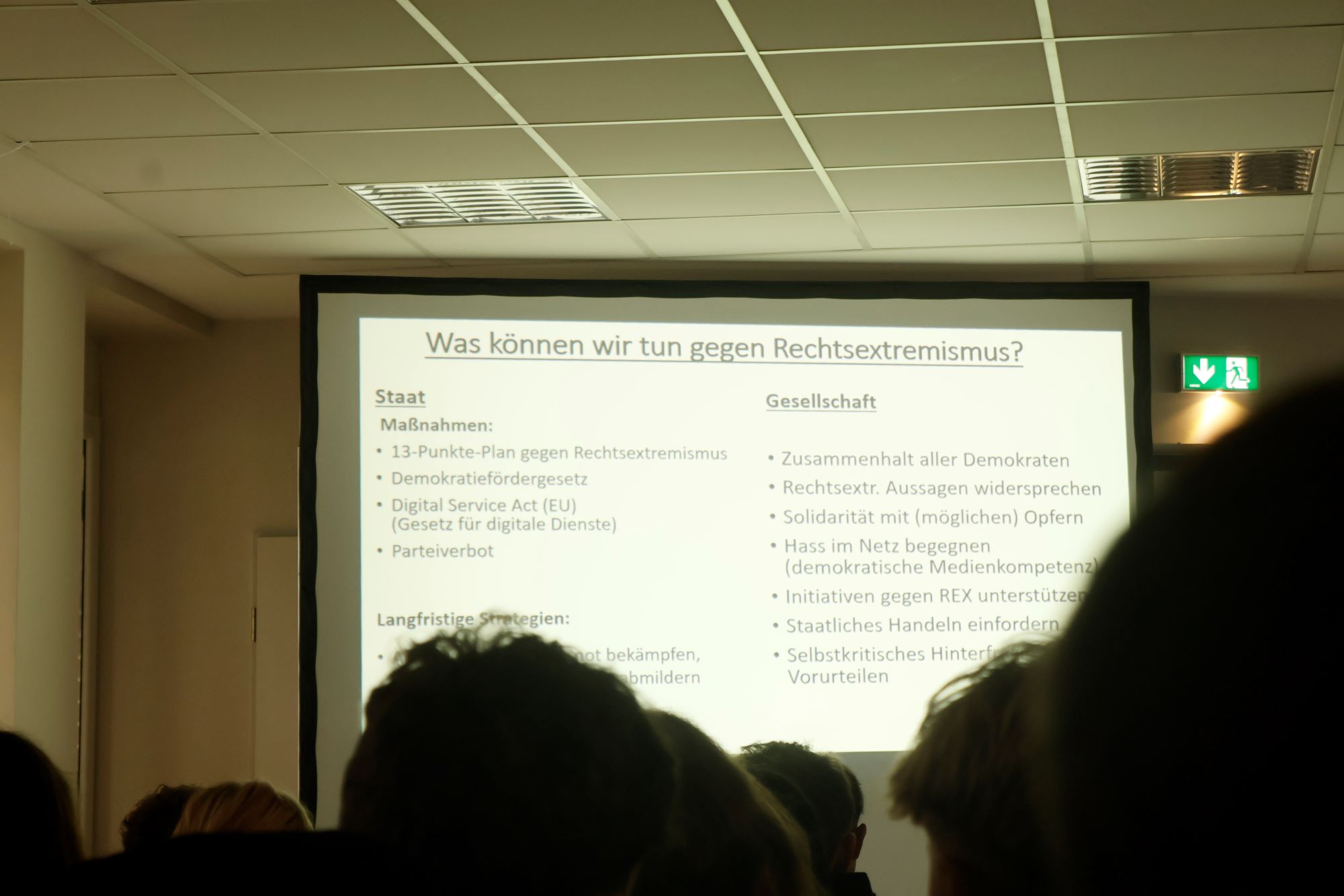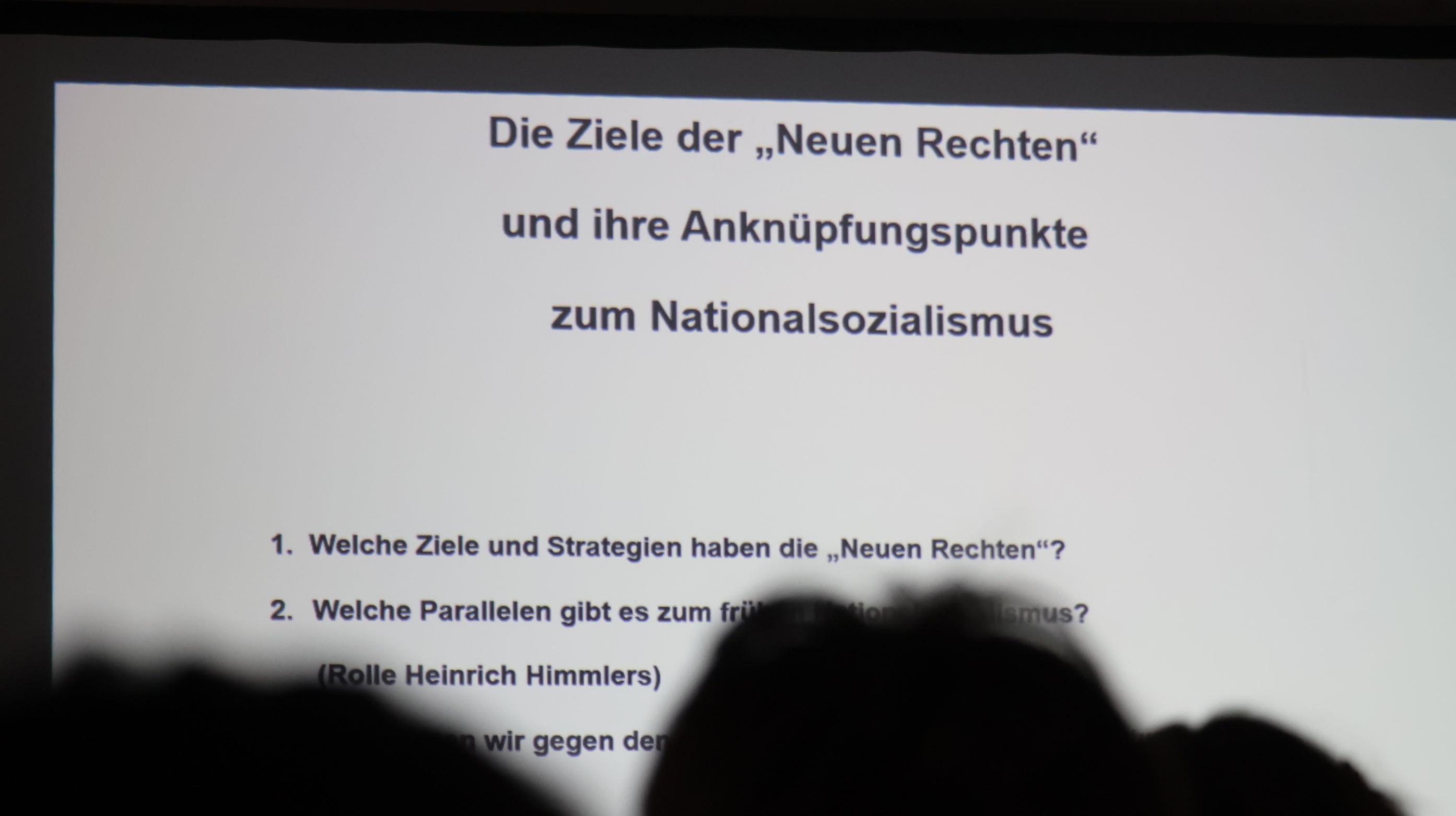 In ihrem Vortrag informierte Kathrin Himmler über die Ziele, Strategien und Netzwerke der „Neuen Rechten“ und zeigte Parallelen zum Nationalsozialismus auf. Anhand konkreter Beispiele machte sie die Gefahren dieser Bewegung deutlich – etwa durch die Verbreitung von Fake News in sozialen Netzwerken. Sie betonte, wie wichtig es sei, populistische und menschenverachtende Darstellungen im Internet kritisch zu hinterfragen.