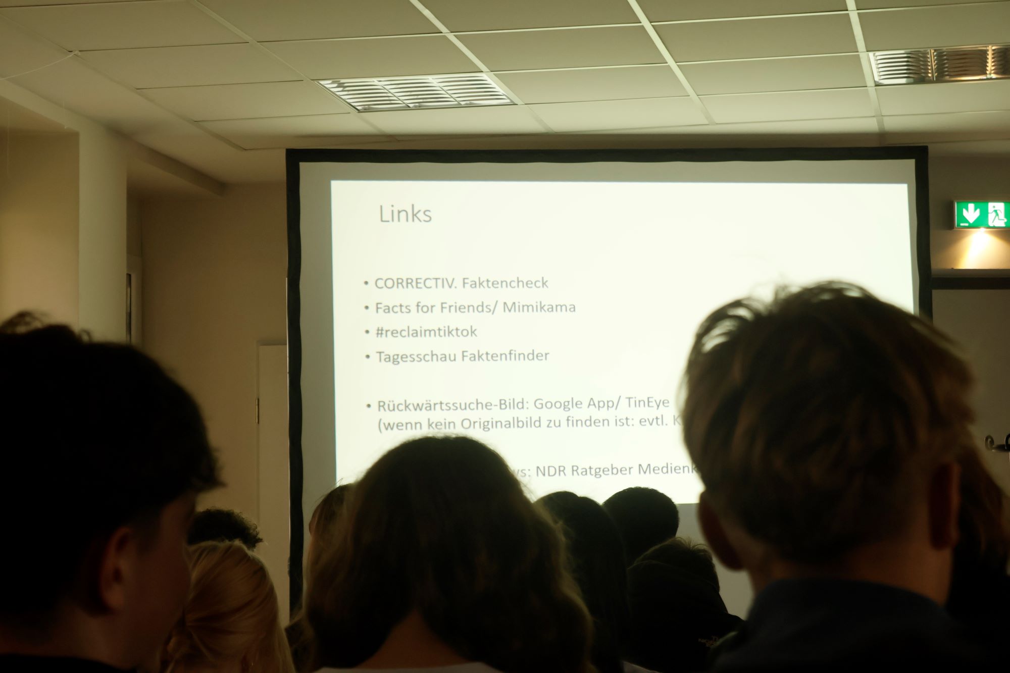 Darüber hinaus stellte Frau Himmler hilfreiche Internetseiten und Organisationen vor, die sich mit der Richtigstellung von Fake News beschäftigen und Beratungs- sowie Unterstützungsangebote bereitstellen.
