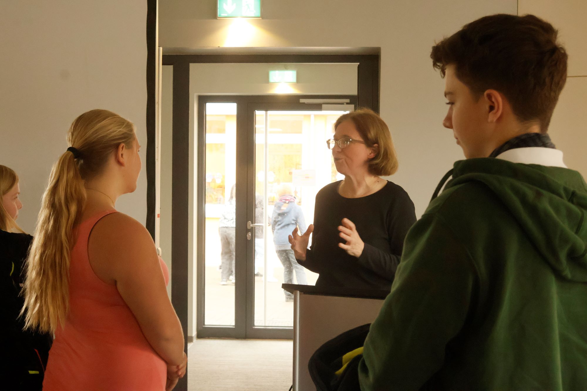 Nach dem Vortrag blieben viele Schülerinnen und Schüler nachdenklich sitzen, suchten das Gespräch mit Frau Himmler, stellten Fragen oder äußerten ihre persönlichen Eindrücke.