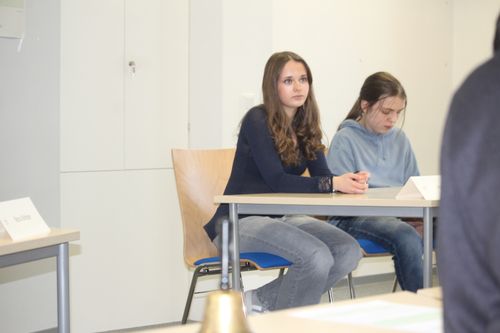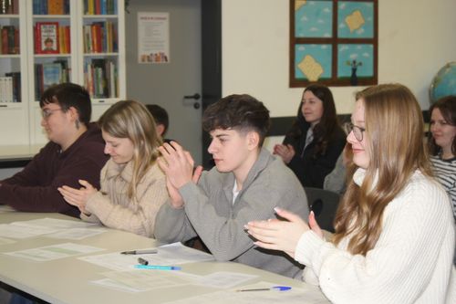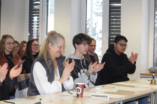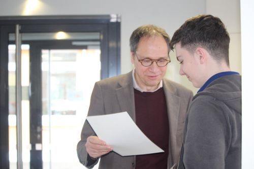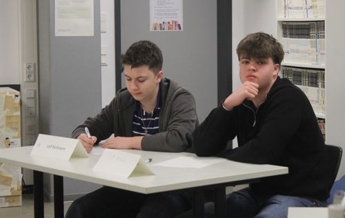 Die CBS war in diesem Schuljahr Gastgeberin für das Regionalfinale von "Jugend debattiert". Die Schülerinnen und Schüler der CBS, der Ursulinen Schule Fritzlar, der König-Heinrich-Schule Fritzlar und des Friedrichsgymnasiums Kassel traten im Wettbewerb gegeneinander an. Debattiert wurde in der ersten Runde die Frage "Sollen Schüler ihre Schule selbst putzen?" Leider schafften unsere Kandidaten Leif Keilmann (10G2) und Tayo Kaukars (8G1) es bei dieser Frage nicht, sich für die Finalrunde zu qualifizieren. Die Finaldebatte wurde unter der Fragestellung "Sollen für schriftliche Prüfungen in der Oberstufe Anwendungen mit künstlicher Intelligenz als Hilfsmittel zugelassen werden?" ausgetragen. In dieser Runde konnten Nora Weber (Platz 1) und Maximilian Hassenpflug (Platz 2) vom Friedrichsgymnasium die Jury von ihrer Debattierkunst überzeugen. Für Nora und Maximilian geht es nun eine Ebene weiter, sie nehmen am Landesfinale Teil. Für alle Teilnehmenden gab es am Ende Urkunden von Regionalkoordinator Frank Jastrzembski (WLS Wolfhagen). Die CBS dankt allen teilnehmenden Schulen für die Teilnahme und den gelungenen und spannenden Vormittag.