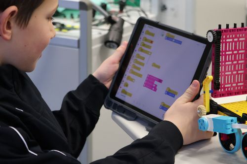 Die Kinder wurden währenddessen von Schülerinnen und Schülern begleitet und konnten die Schule auf spielerische Weise erkunden. In der Schulküche durften die zukünftigen Fünftklässler leckere Energy Balls zubereiten, im Fachbereich NaWi bekamen sie Einblicke in die Robotik-AG. Außerdem erhielten sie erste Eindrücke davon, wie es sich anfühlt, eine erste Französischstunde zu erleben.