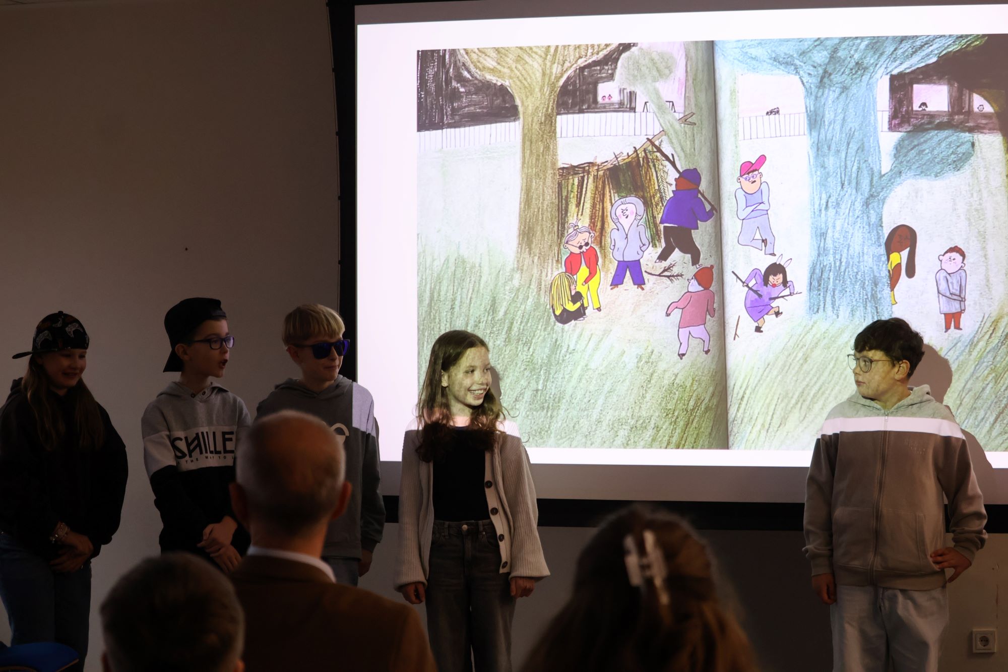 Den Auftakt gestaltete die Klasse 4 der Elbetalschule. Mit einer szenischen Darstellung des Bilderbuchs „Wir sind die Bestimmer“ zeigten die Kinder, wie Ausgrenzung entsteht und wie wichtig es ist, die eigene Stimme zu erheben. Zwei Gruppen standen sich gegenüber: die Bestimmer und jene, über die bestimmt wurde – bis sich die Rollen änderten.