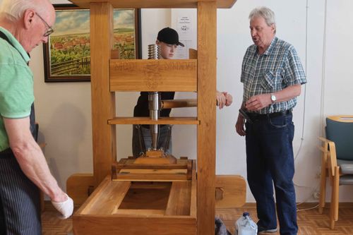 Die Presse war eigens für die Schülerinnen und Schüler der CBS vom Geschichtsverein Bad Emstal für eine Woche angemietet worden. Unter Anleitung von Herrn Rogge und Herrn Bräutigam, beide ebenfalls vom Geschichtsverein, durften die Schülerinnen und Schüler selbst Hand anlegen und die schwere Presse bedienen. Mit großem Interesse verfolgten sie, wie aus Druckplatte, Druckerschwärze, Papier und etwas Muskelkraft ein fertiges Druckerzeugnis entstand – welches sie als Erinnerung sogar mit nach Hause nehmen durften.